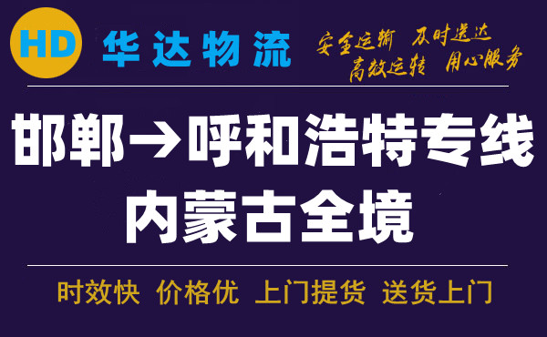 邯鄲到呼和浩特物流公司 華達物流,可提供整車運輸、零擔(dān)運輸、大件運輸、長途搬家,回程車調(diào)用等物流服務(wù),價格優(yōu)惠,時效有保障,可以門到門服務(wù),您只需一個電話,一切幫您搞定,邯鄲都可以上門取貨及周邊各縣。